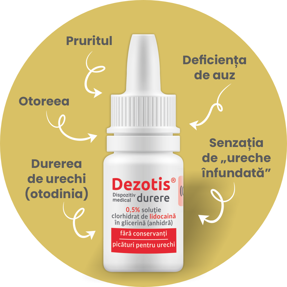 Mod de utilizare: Adulți și copii cu vârsta de peste 6 luni: 2 picături în fiecare ureche de 1-3 ori pe zi.
