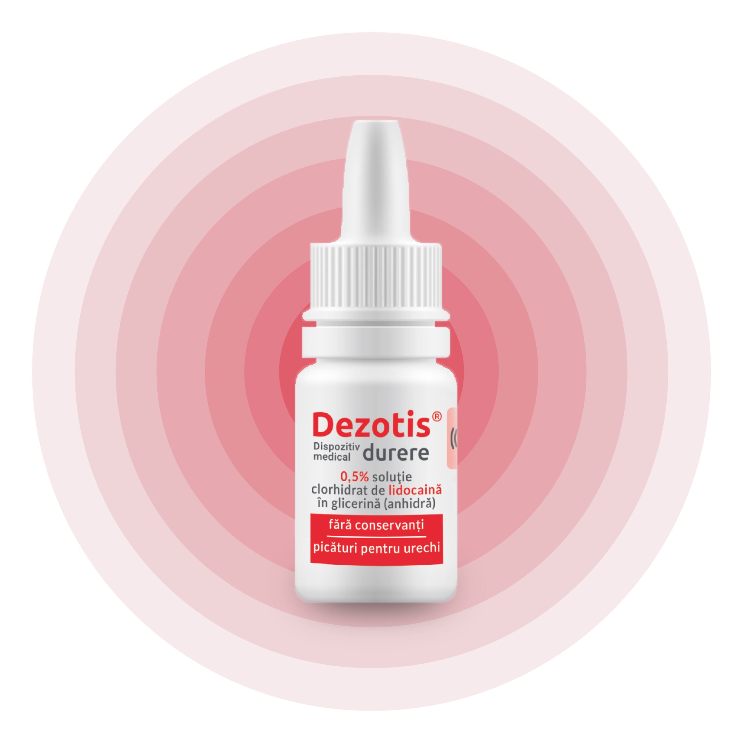 ⦁ afecțiuni ale urechii însoţite de durere, cauzate de: expunerea regulată la apă şi umiditate (de ex. practicarea înotului), utilizarea prelungită a căştilor sau existenţa dopurilor de ceară care înfundă canalul auditiv extern sau de utilizarea frecventă a detergenţilor, care distrug bariera naturală de protecţie a canalului auditiv extern (de ex. şampoane, săpunuri, geluri).